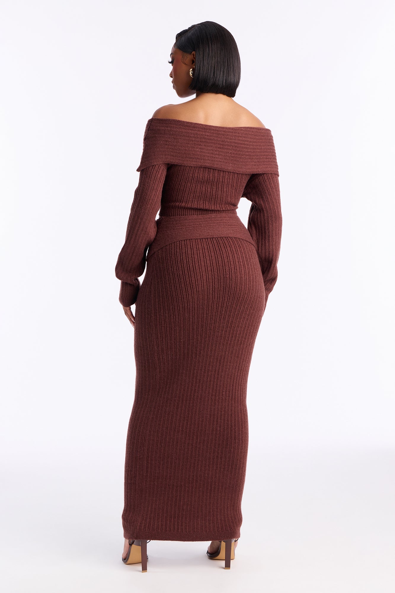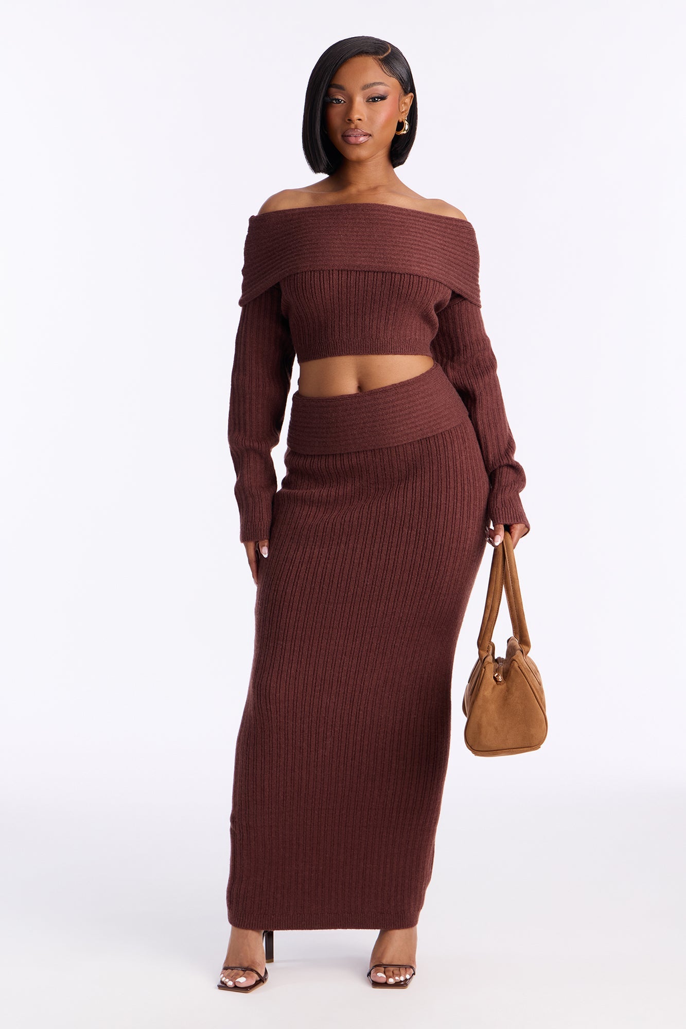 طقم تنورة ماكسي بكنزة نيفيا - شوكولاتة