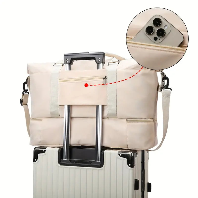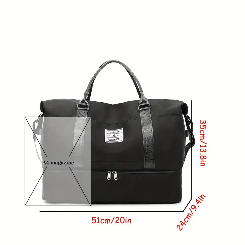 - Veelzijdige opbergruimte: Inclusief een waterdichte natte zak en een apart schoenenvak om vuile schoenen gescheiden te houden.