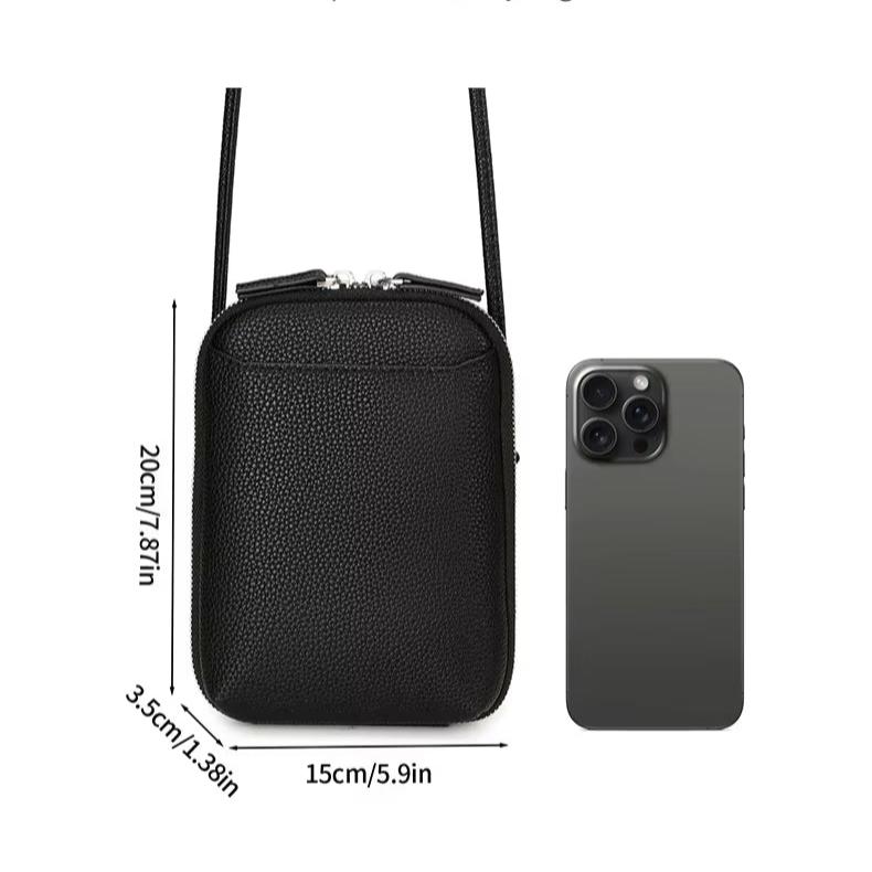 - Veilig en compact: Het hoofdvak met rits biedt ruimte voor telefoon, sleutels en kaarten.