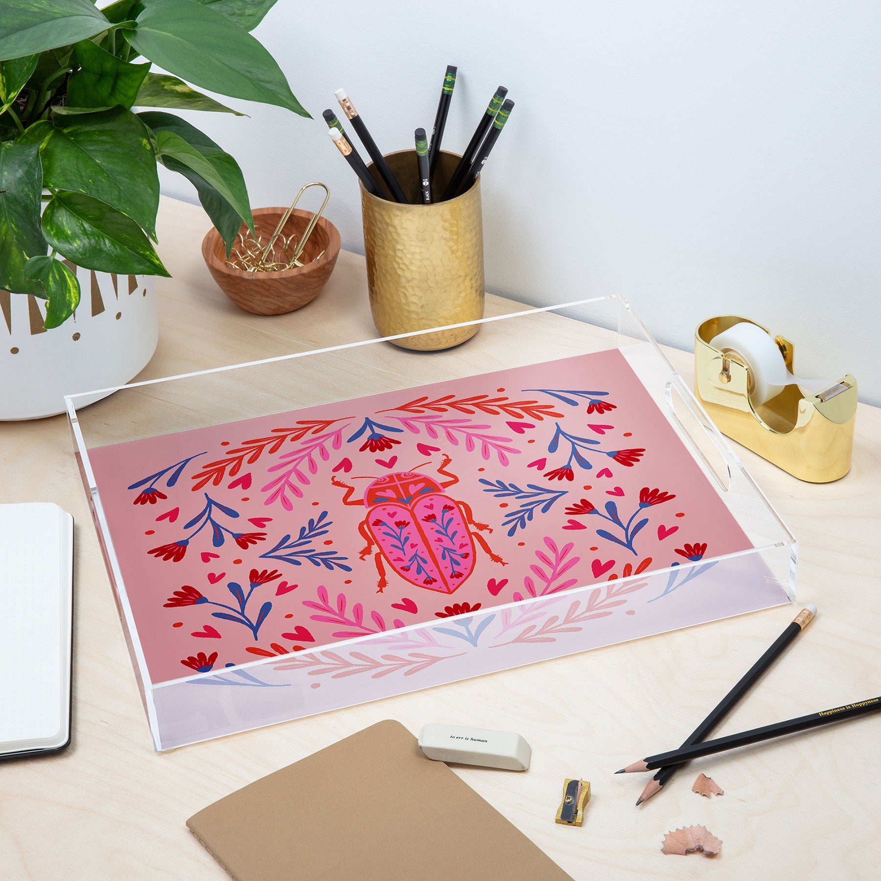 Angela Minca Lovebug pink and red Acrylic Tray