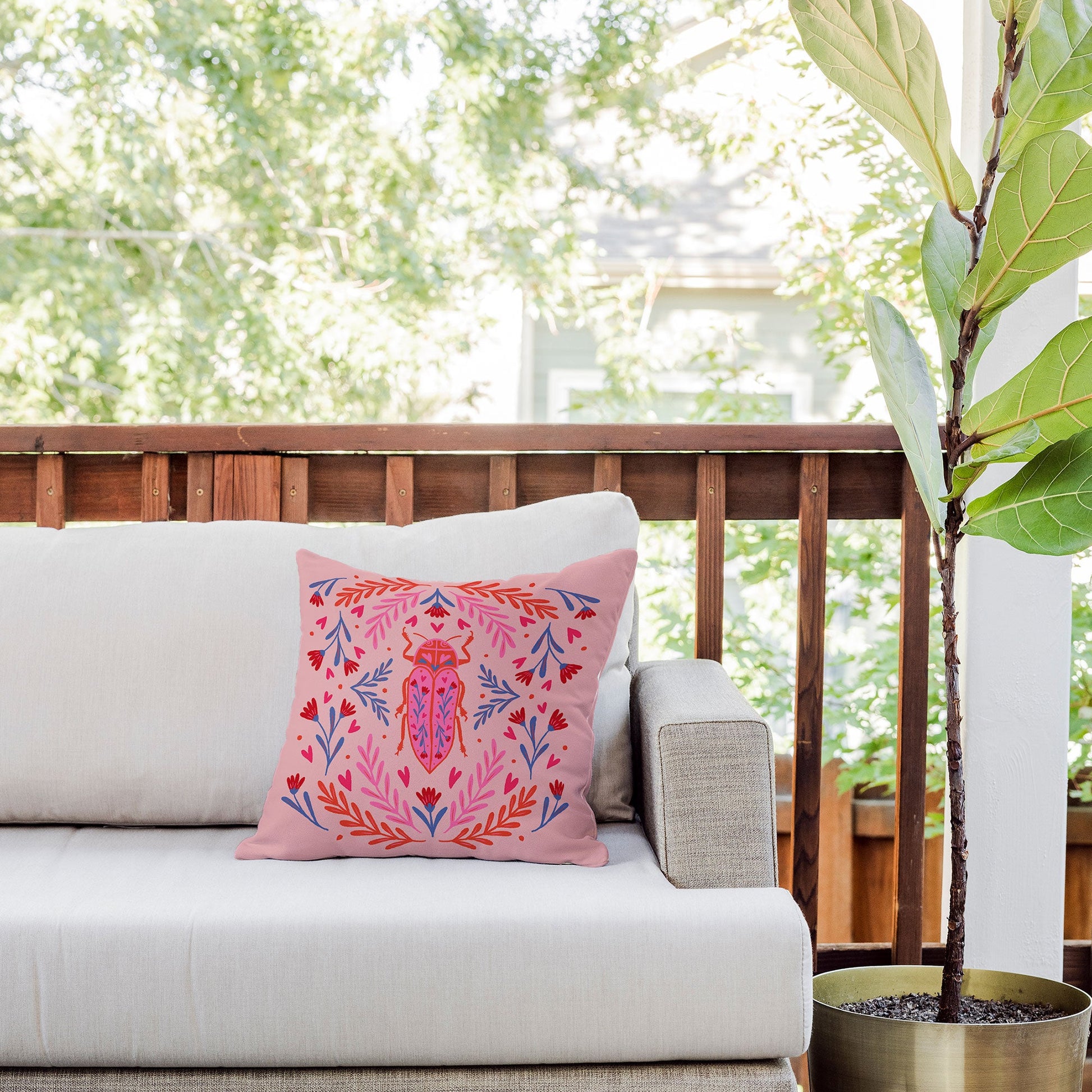 Angela Minca Lovebug pink and red Outdoor Throw Pillow