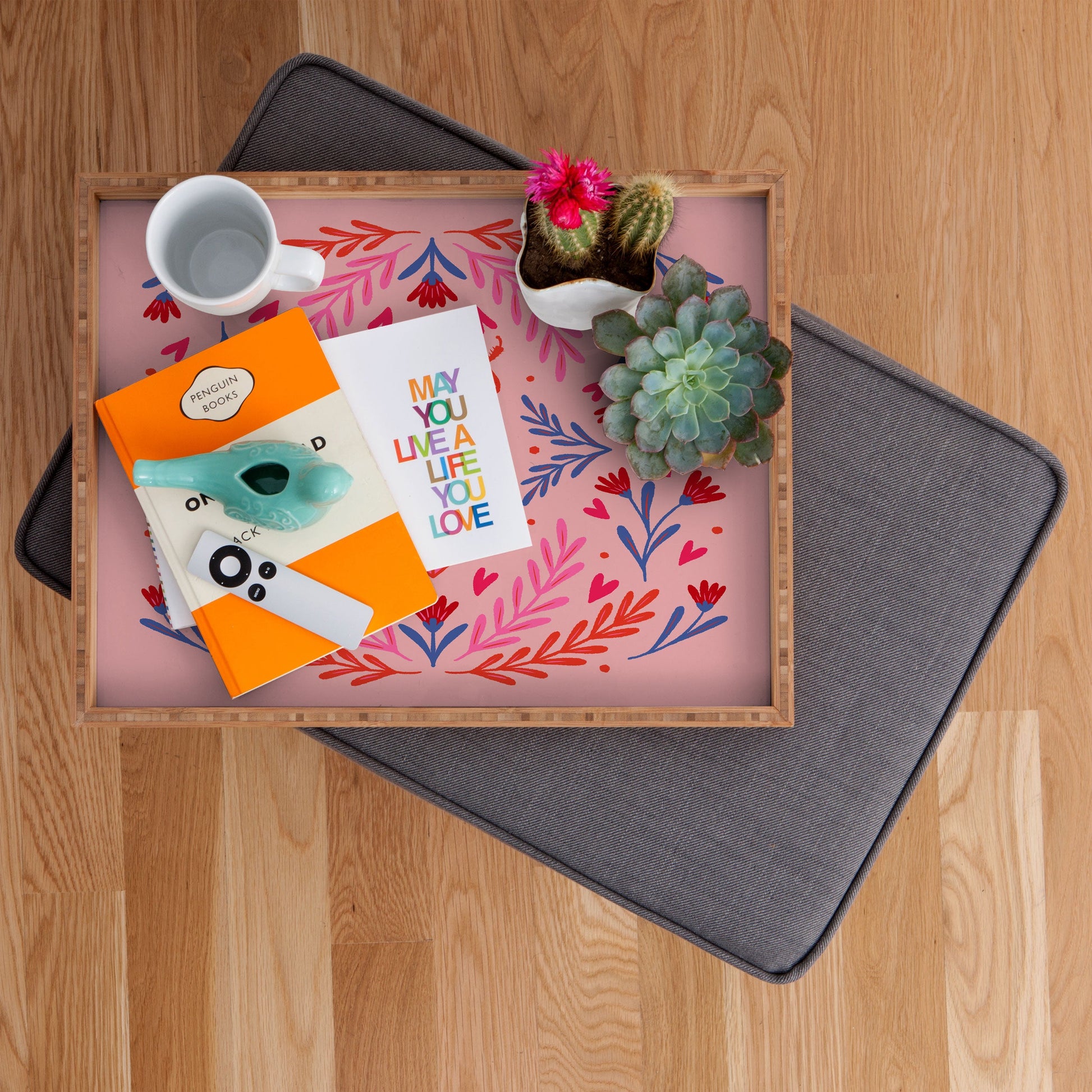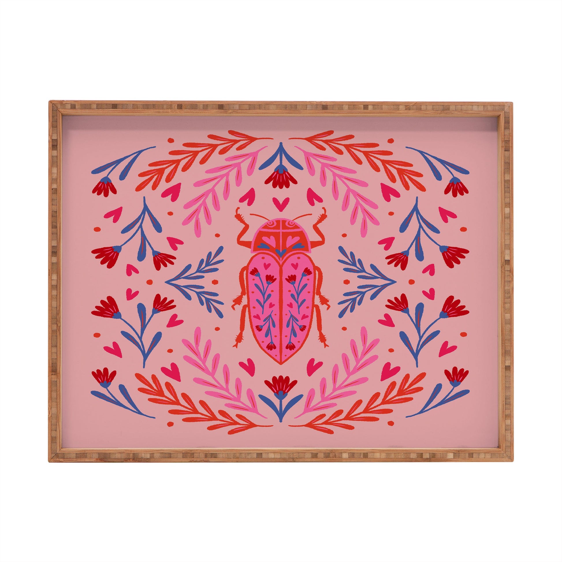Angela Minca Lovebug pink and red Rectangular Tray