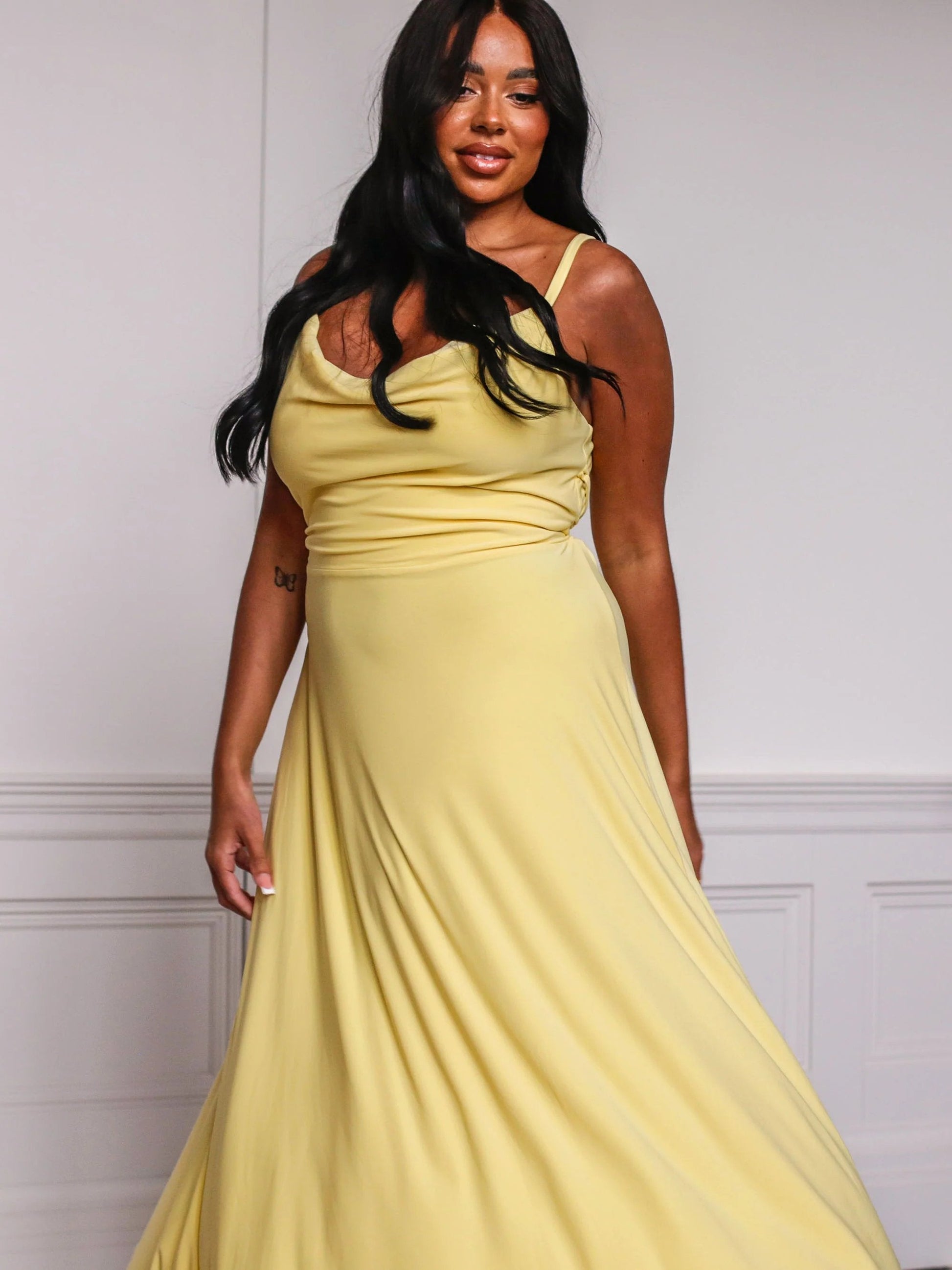 Ontdek moeiteloze elegantie met de Annabellina Chique Maxi Dress. Ontworpen met een gedrapeerd voorpaneel en een vloeiende rok, biedt deze jurk een perfecte balans tussen verfijning en subtiele allure. De gekruiste rug en verstelbare pasvorm maken het een veelzijdige keuze voor verschillende gelegenheden.