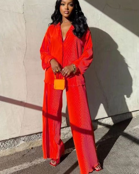 - Stijlvolle Combinatie: De set bestaat uit een loszittend shirt en een ruimvallende broek, waardoor je een elegante look creëert zonder in te boeten op comfort.