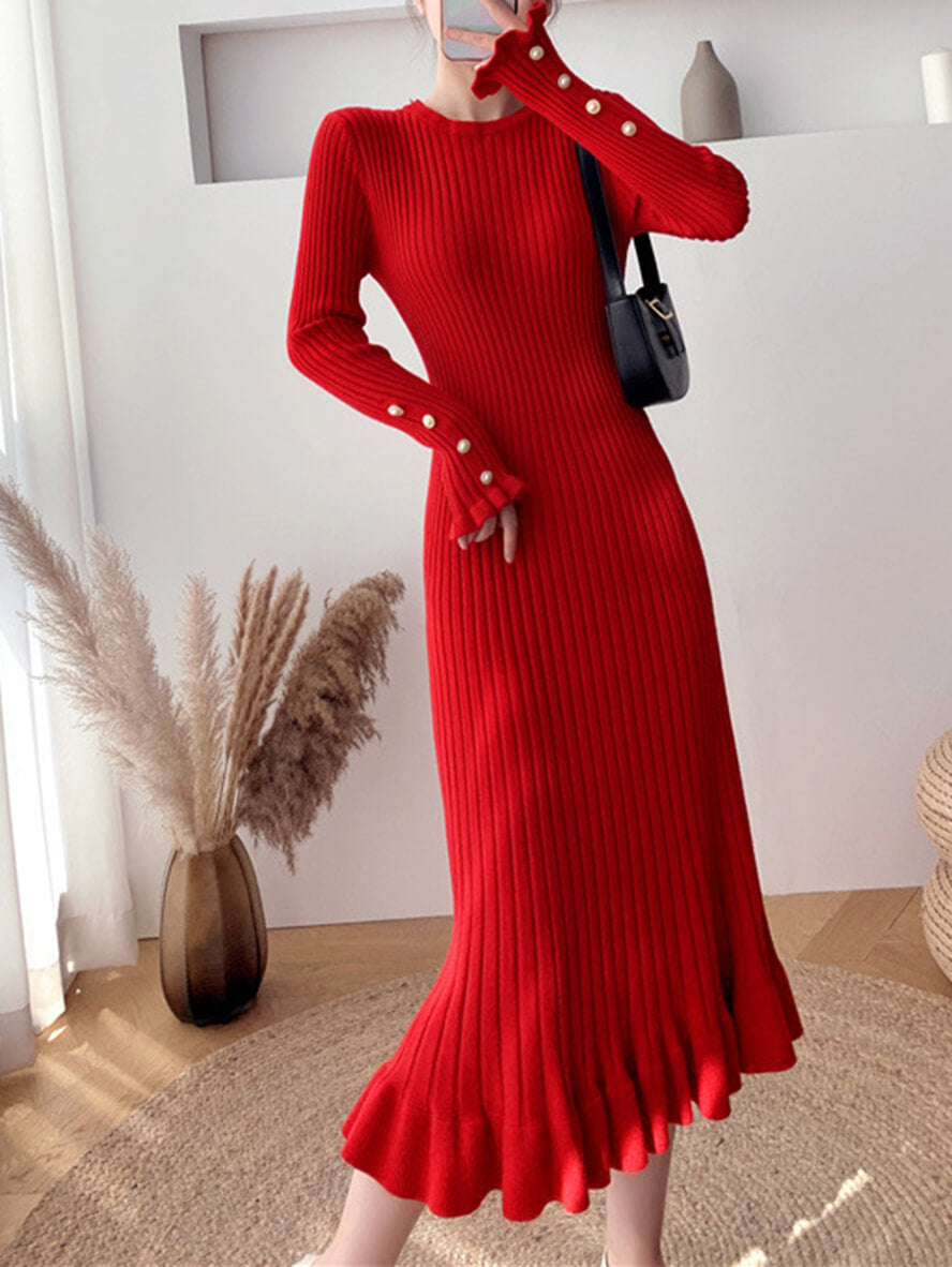 De Vheana - Elegante Uitlopende Zoom voor Vrouwen brengt verfijning en moderne stijl samen in één prachtig ontwerp. Met een bodycon pasvorm die je silhouet flatteert en elegante ruches voor een vrouwelijke touch, is deze jurk perfect voor speciale gelegenheden. De lange mouwen voegen een extra laag stijl toe, terwijl het subtiele ribpatroon zorgt voor textuur en diepte.