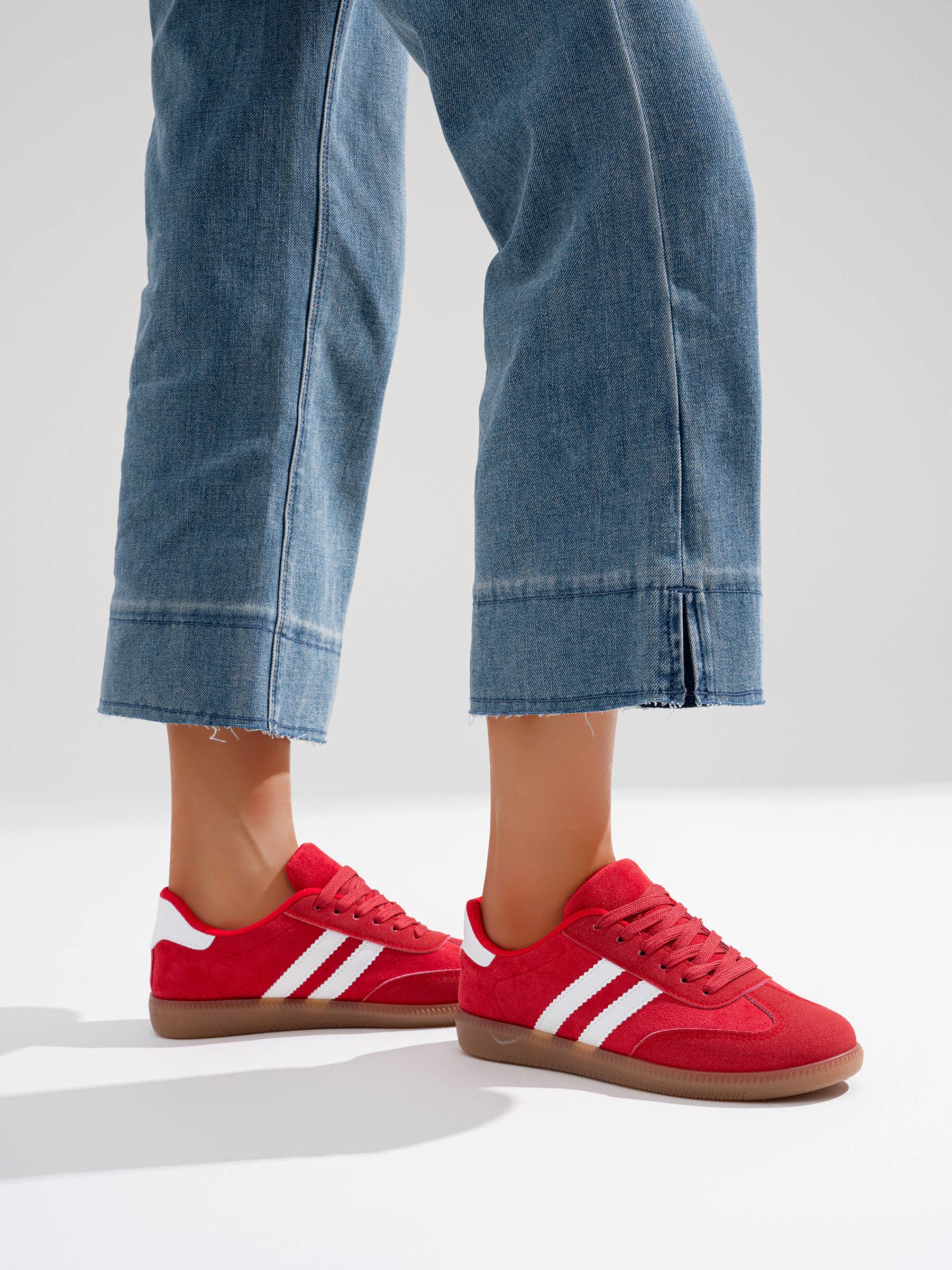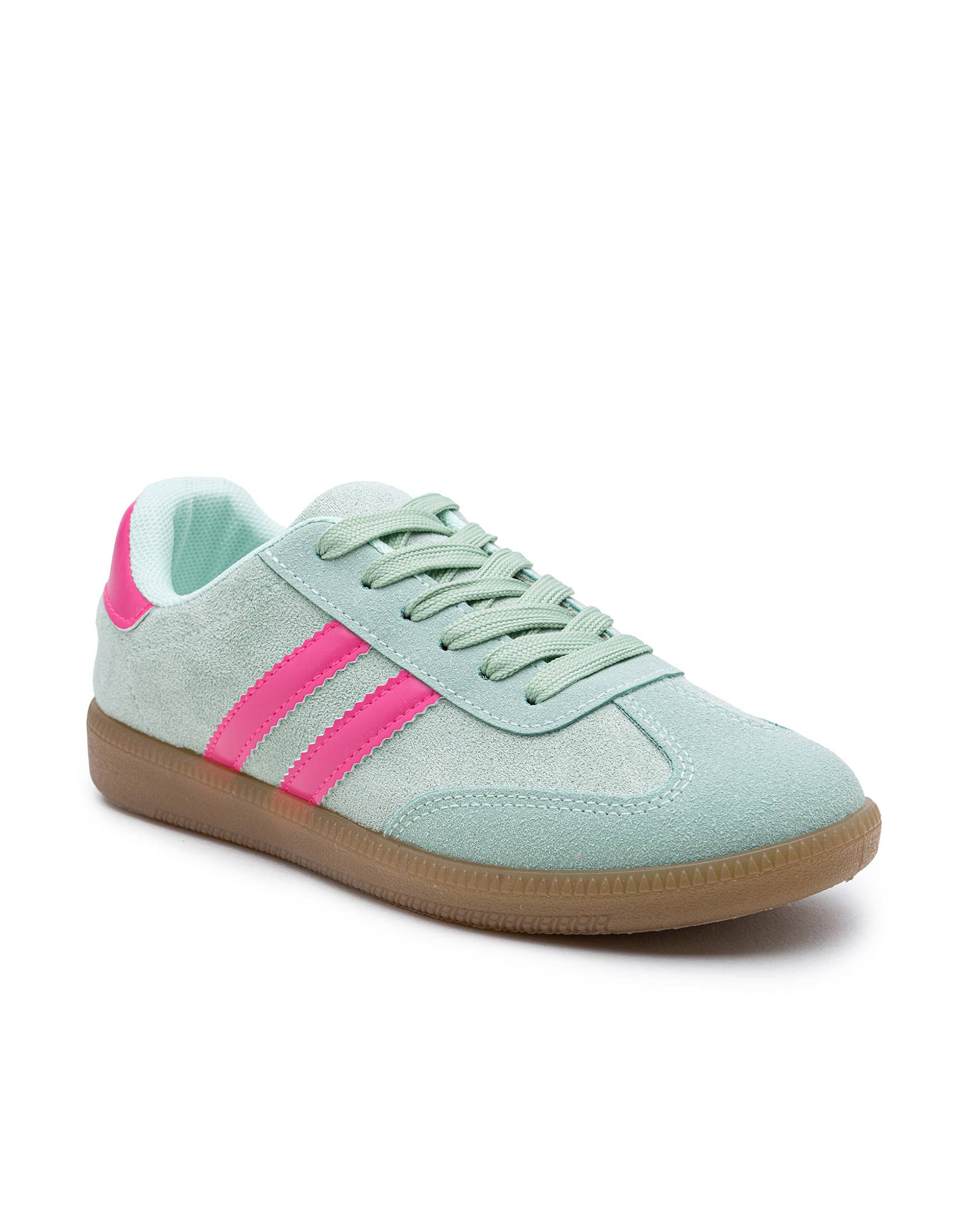 Women retro trainers sneakers for casual occasions. Faux leather and suede, laced closure, cushioned insole, rubber sole. Our products are sold in cases, each of which is pre-packaged with 12 pairs of the same model and color. Our size break per case goes as follows: EU 36 (1 Pair) EU 37 (2 Pairs) EU 38 (3 Pairs) EU 39 (3 Pairs) EU 40 (2 Pairs) EU 41 (1 Pair)